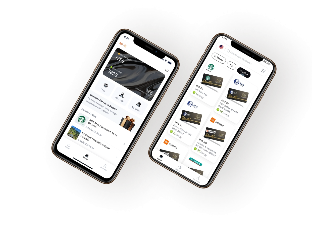 Pool your rewards from every app. Use them seamlessly across platforms and merchants—to redeem online vouchers,